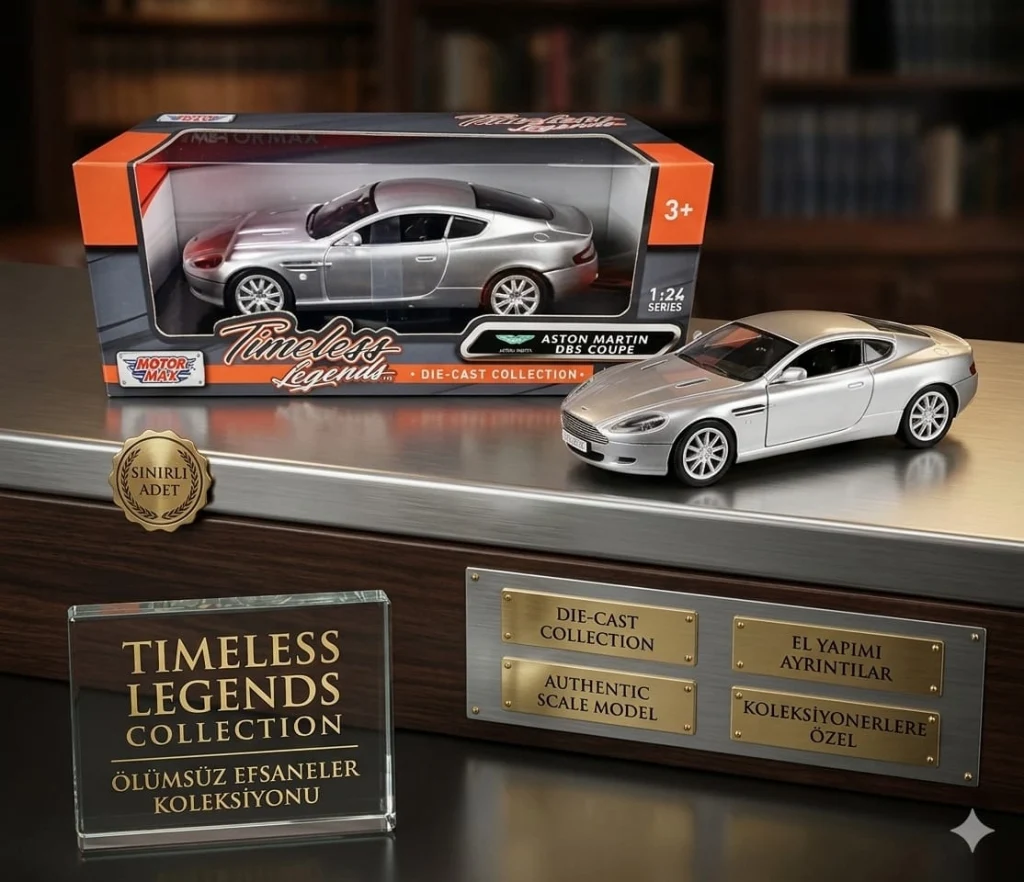 1:24 Model Araba Motormax 1:24 Model Araba Motormax Aston Martin DB9 Coupe Diecast model araçlar, çinko ve alüminyum karışımı malzemeden dökme kalıplama yönetimi ile üretilir. Diecast model araçlar, gerçek ölçülerine sadık kalınarak birebir küçültülerek üretilmektedir ve genel olarak koleksiyon/sergilenme amacı ile kullanılır.
