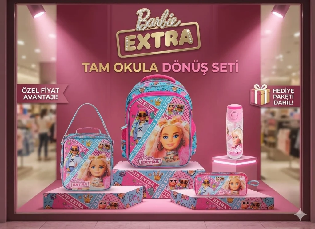 Barbie Lisanslı Okul Çantası - Beslenme Çantası - Kalem Kutusu Set - Suluk&Matara Hediye