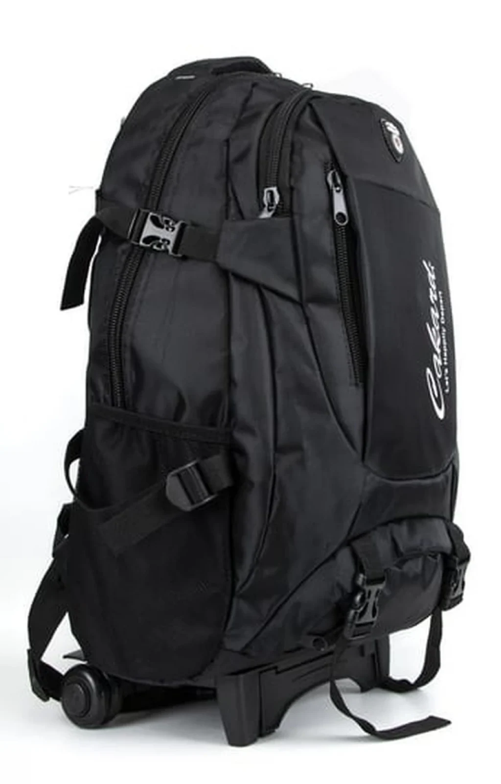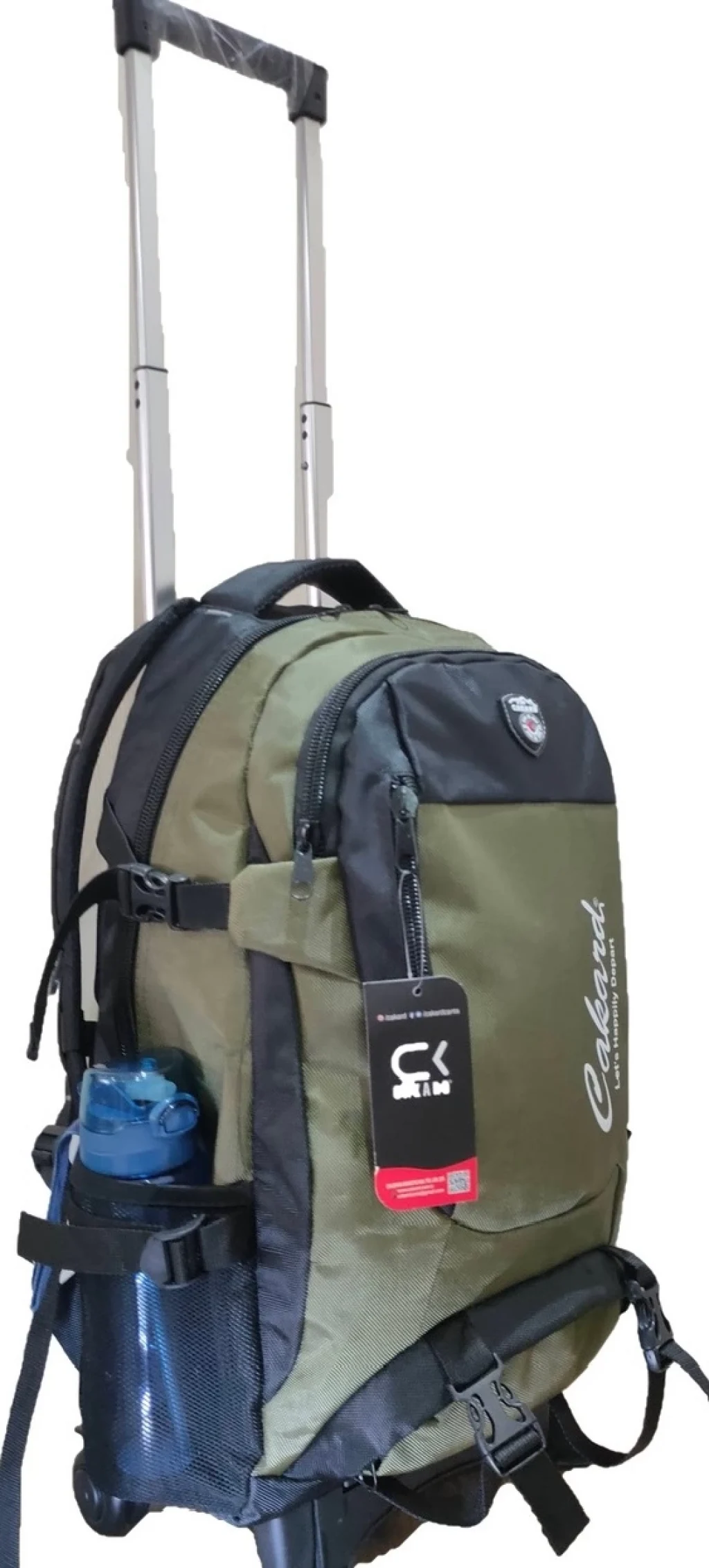 Tekerlekli Çekçekli Sırt Çantası Tablet , laptop başta olmak üzere , elbiseleriniz, kitaplarınız ve seyahat malzemelerinizi saklamak için büyük bir ana gözden , bir ön gözden , cep telefonunuz , cüzdanınız için bir küçük gizli kapaklı cepten oluşan çok gözlü ceplere sahip olup su şişeleri veya şemsiyeler için iki yan file cepten oluşur.
