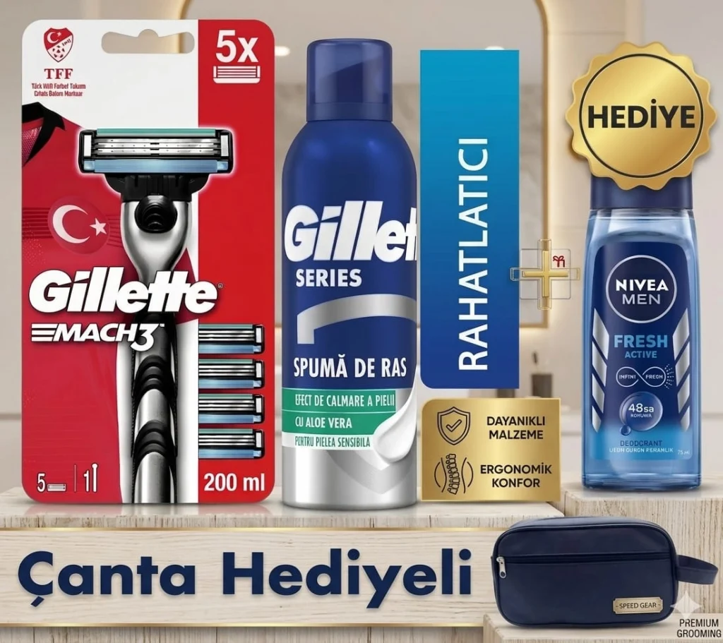 Gillette Mach3 tıraş makinesinin tüm Mach3 başlıklarıyla uyumlu olması bıçaklarınızı değiştirirken kolaylık sağlar. Mükemmel Gillette tıraşı sonuçlarına ulaşmak ve tıraş makinesine bağlı yanmalardan korunmak amacıyla3, tıraşınızı Gillette Mach3 Extra Comfort tıraş jeli ile tamamlayın.