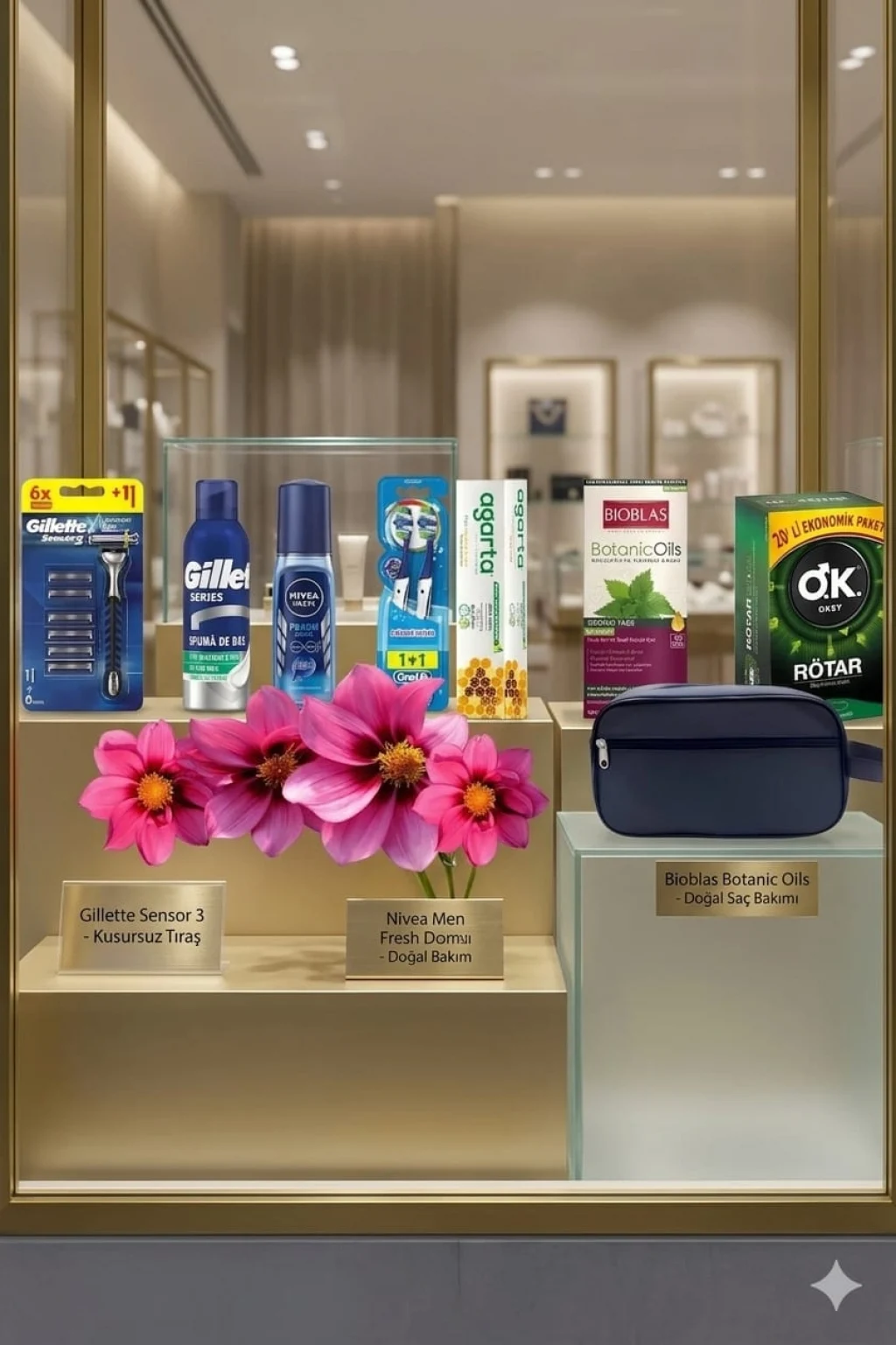 Gillette Fusion 4Up Tıraş Makinesi + Jel + Nivea Deodorant + Diş Macunu + Diş Fırçası + Çanta