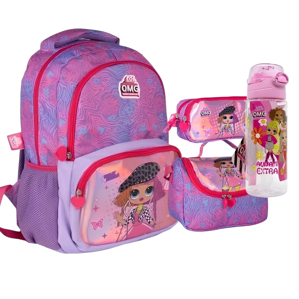 L.O.L Omg Okul Çantası : Kızların en çok sevdiği karakterlerden L.O.L. Okul Çantası ile okula gitmek şimdi daha çok eğlenceli! Çocuklar en sevdikleri karakterlerden biri olan L.O.L desenli bu şık okul çantası ile okula gitmeyi daha çok sevecekler! İki bölmeli, geniş iç hacmi, üstten tutma aparatı, konfor ve destek sağlayan sırt paneli ve ayarlanabilir omuz askısı özelliklerine sahiptir. Ön kısımda bulunan cep kısmında küçük eşyalarınızı taşıyabilirsiniz. Yan tarafında cep bölmesi bulunmaktadır. L.O.L. bebek baskılı ve parlak renklere sahip L.O.L bebek okul çantası ile kızınız okulda parıl parıl parlayacak! Sağlığa zararlı kanserojen madde içermeyen kumaştan üretilmiştir. Sağlık testlerinden geçmiştir. Ürün ölçüsü: 30 x 15 x 39 cm