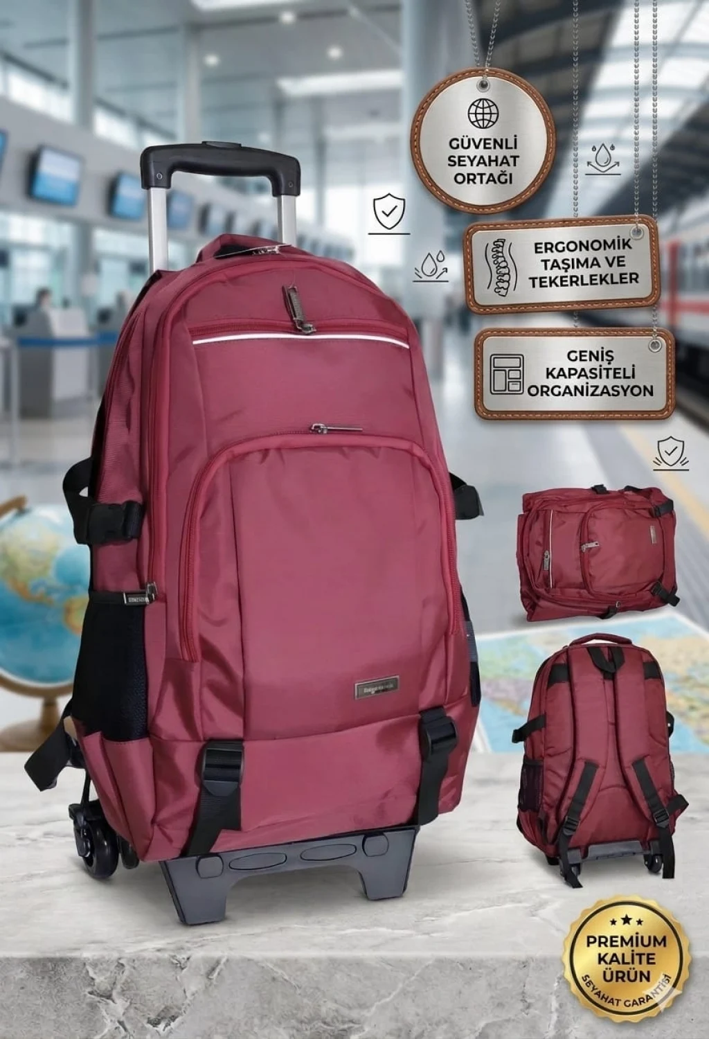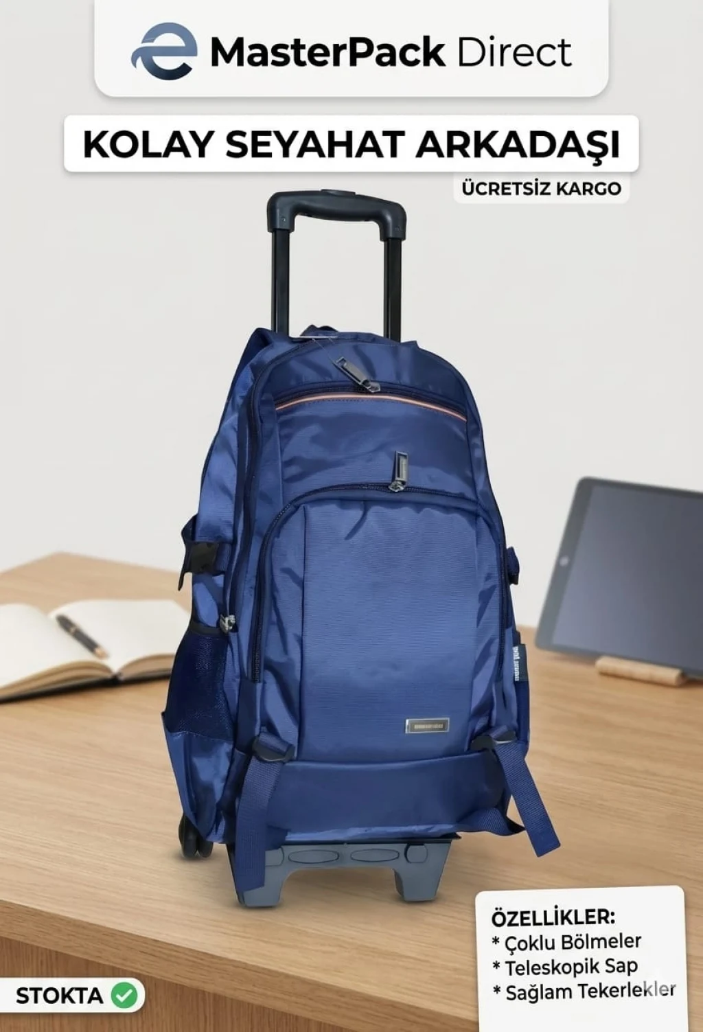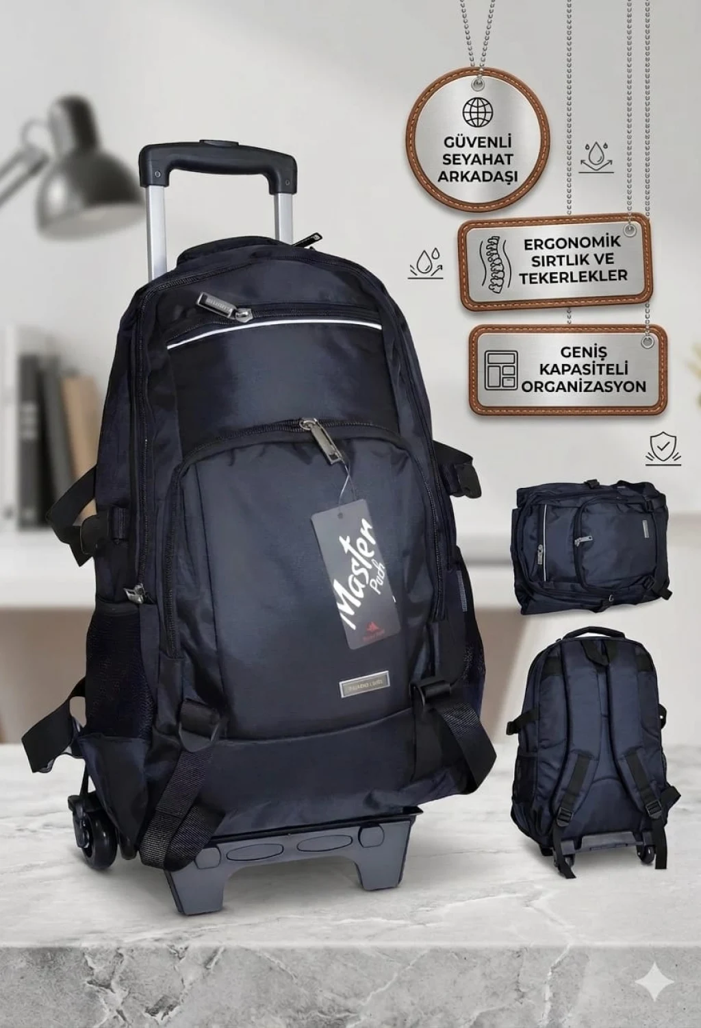 MASTER PACK Lux Çekçekli Tekerlekli , Dağcı Seyahat Laptop Bölmeli , Sırt Çantası