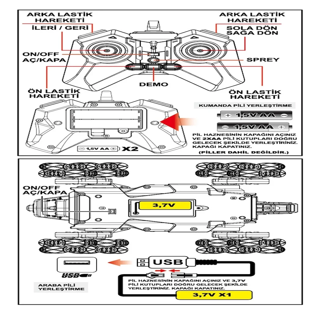 Vardem Uzaktan Kumandalı Full Fonksiyon Şarjlı Akrobat Araba
