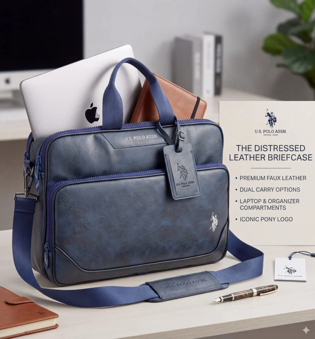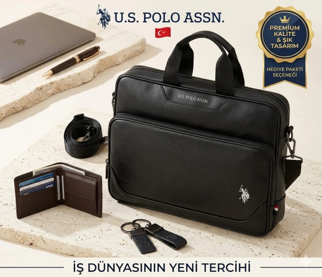 U.S.Polo Assn. Suni Deri Evrak Çantası