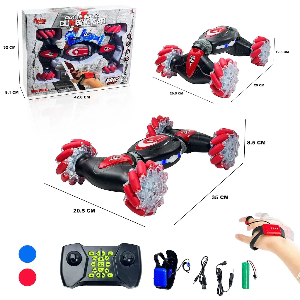 Biri bilekten kontrol edilebilen, 2.4 GHz frekansında çalışan 2 adet kumandaya sahip
